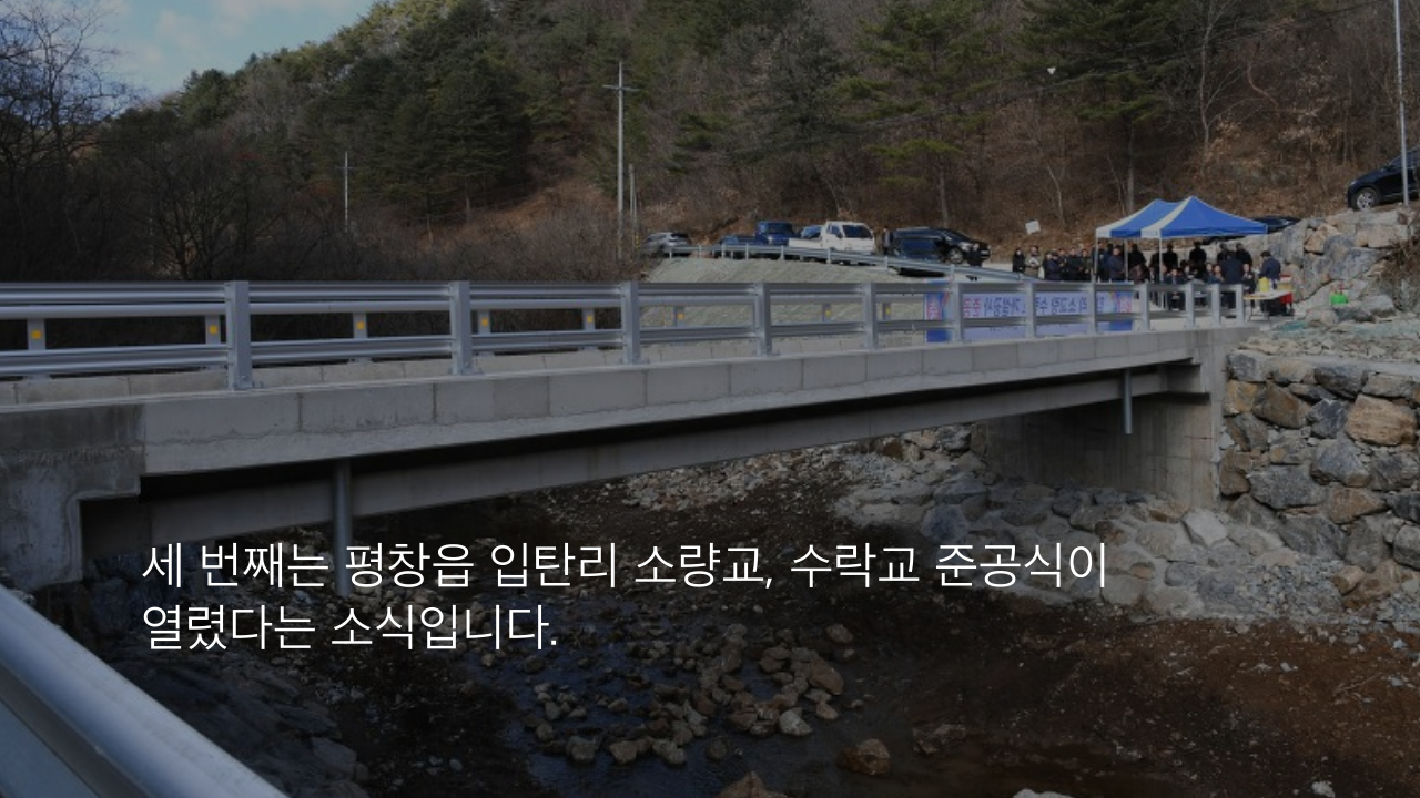 세 번째는 평창읍 입탄리 소량교, 수락교 준공식이 열렸다는 소식입니다.