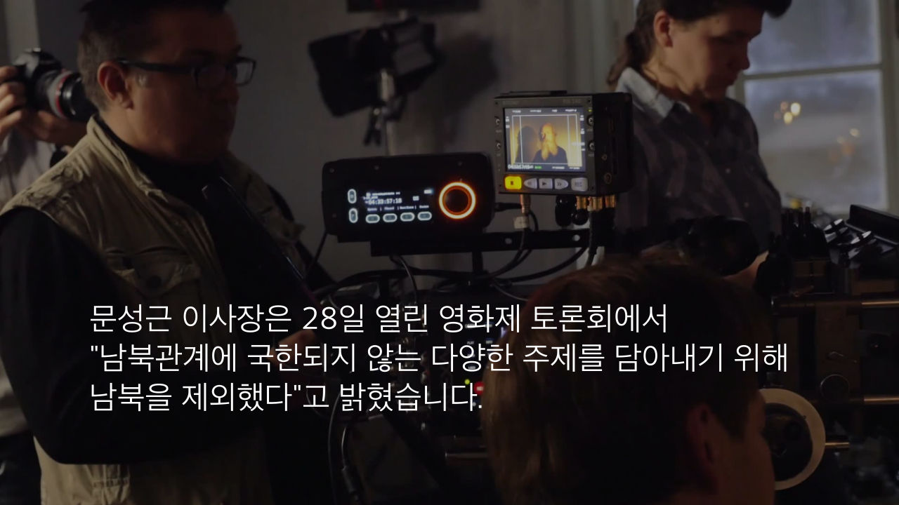 문성근 이사장은 28일 열린 영화제 토론회에서 "남북관계에 국한되지 않는 다양한 주제를 담아내기 위해 남북을 제외했다"고 밝혔습니다.