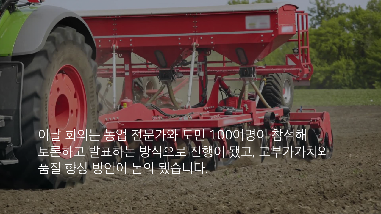 이날 회의는 농업 전문가와 도민 100여명이 참석해 토론하고 발표하는 방식으로 진행이 됐고, 고부가가치와 품질 향상 방안이 논의 됐습니다.