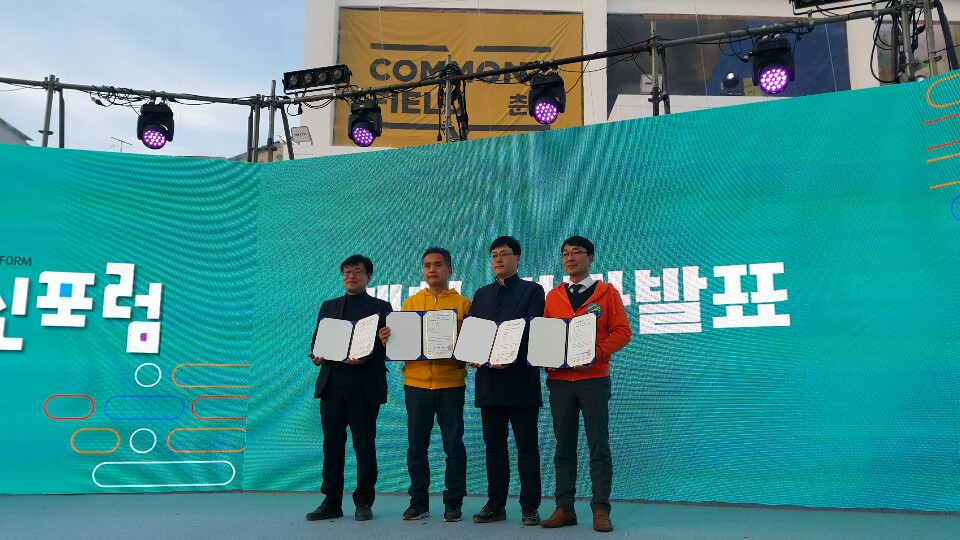 행정안전부 주관 사업으로, 강원도민들이 느끼는 지역 사회문제나 불편한 점을 지역 의제로 발굴하고, 도내의 공공기관과 함께 해결하는 협업형 사회혁신 프로젝트인 ‘제2회 강원혁신포럼’이 11월 27일 새롭게 문을 연 커먼즈필드 춘천(춘천사회혁신파크)에서 성황리에 마쳤다. 강원도, 강원혁신도시 공기업 등의 공공기관, 9개의 강원혁신포럼 실행의제팀, 그리고 많은 강원도민의 관심을 가지고 참석하여, 그 성원에 힘입어 9개 실행의제 모두 공공기관과 매칭되는 성과를 거두었다.