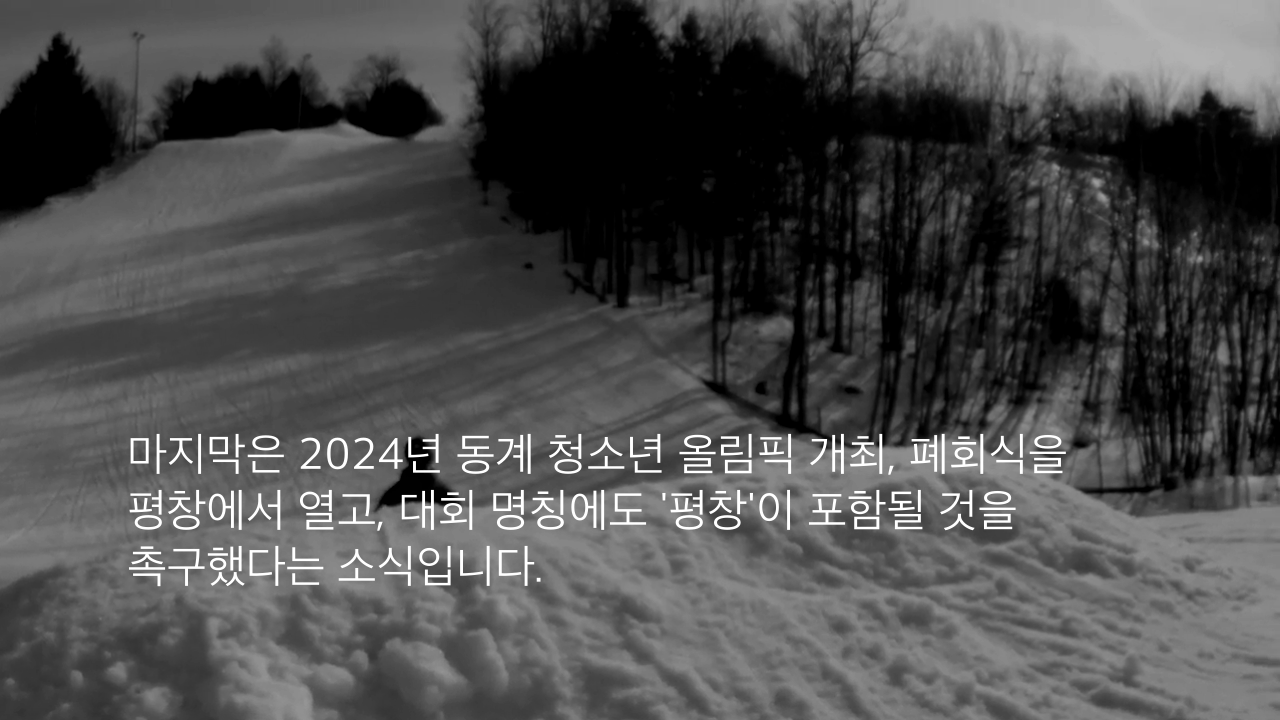 마지막은 2024년 동계 청소년 올림픽 개최, 폐회식을 평창에서 열고, 대회 명칭에도 '평창'이 포함될 것을 촉구했다는 소식입니다.