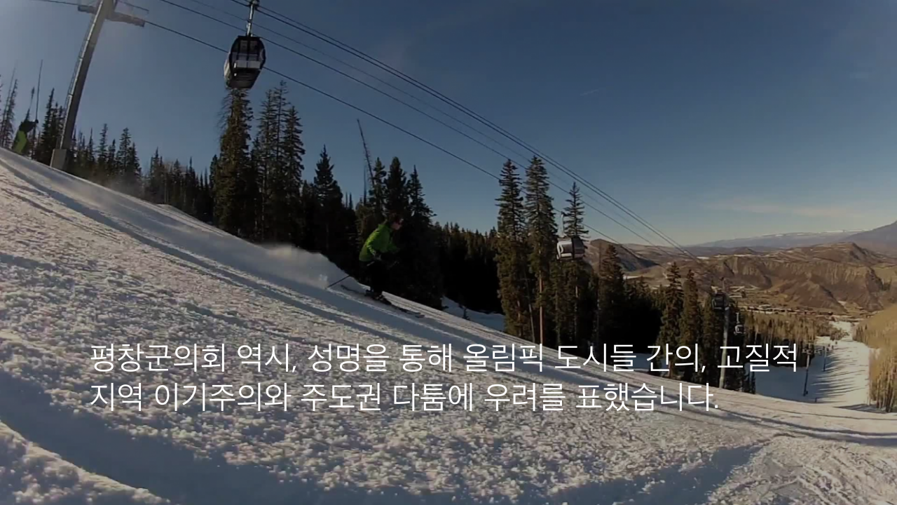 평창군의회 역시, 성명을 통해 올림픽 도시들 간의, 고질적 지역 이기주의와 주도권 다툼에 우려를 표했습니다.
