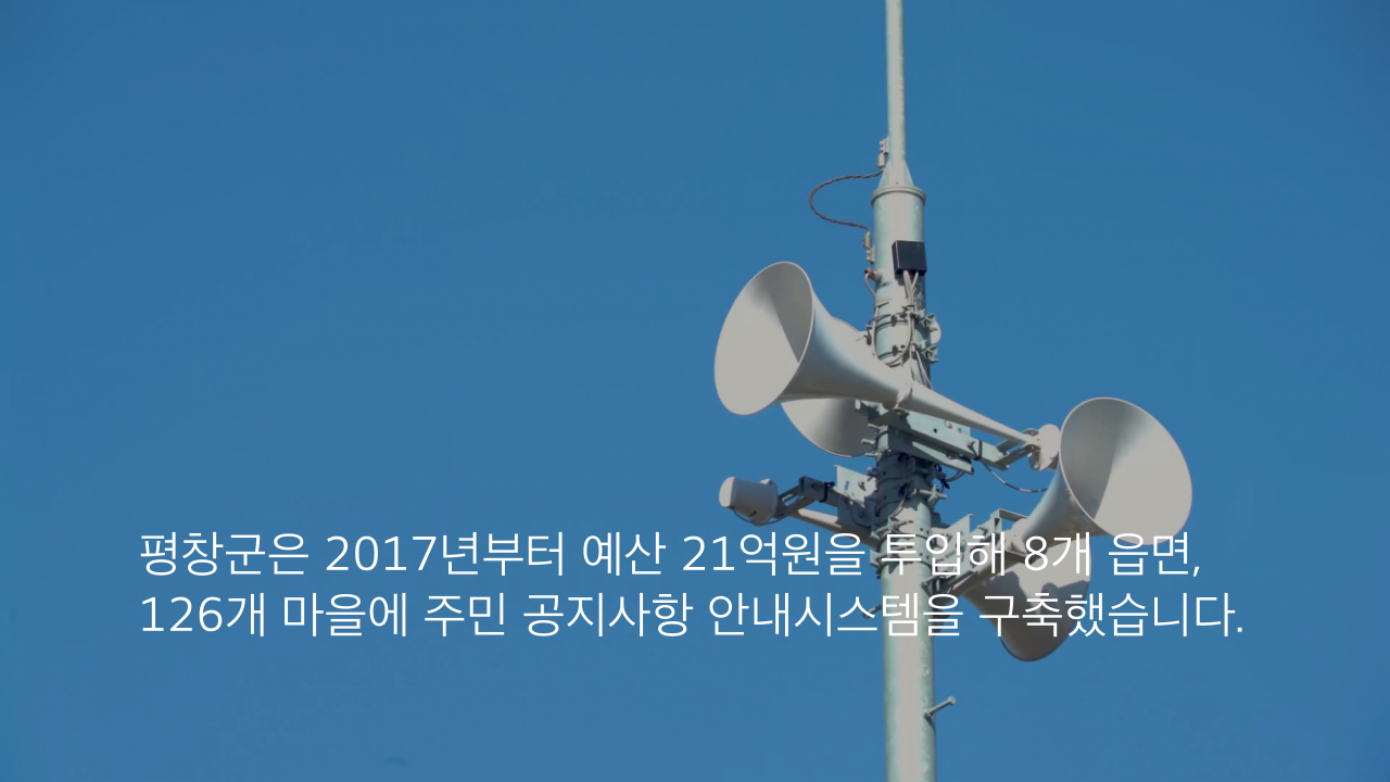 평창군은 2017년부터 예산 21억원을 투입해 8개 읍면, 126개 마을에 주민 공지사항 안내시스템을 구축했습니다.