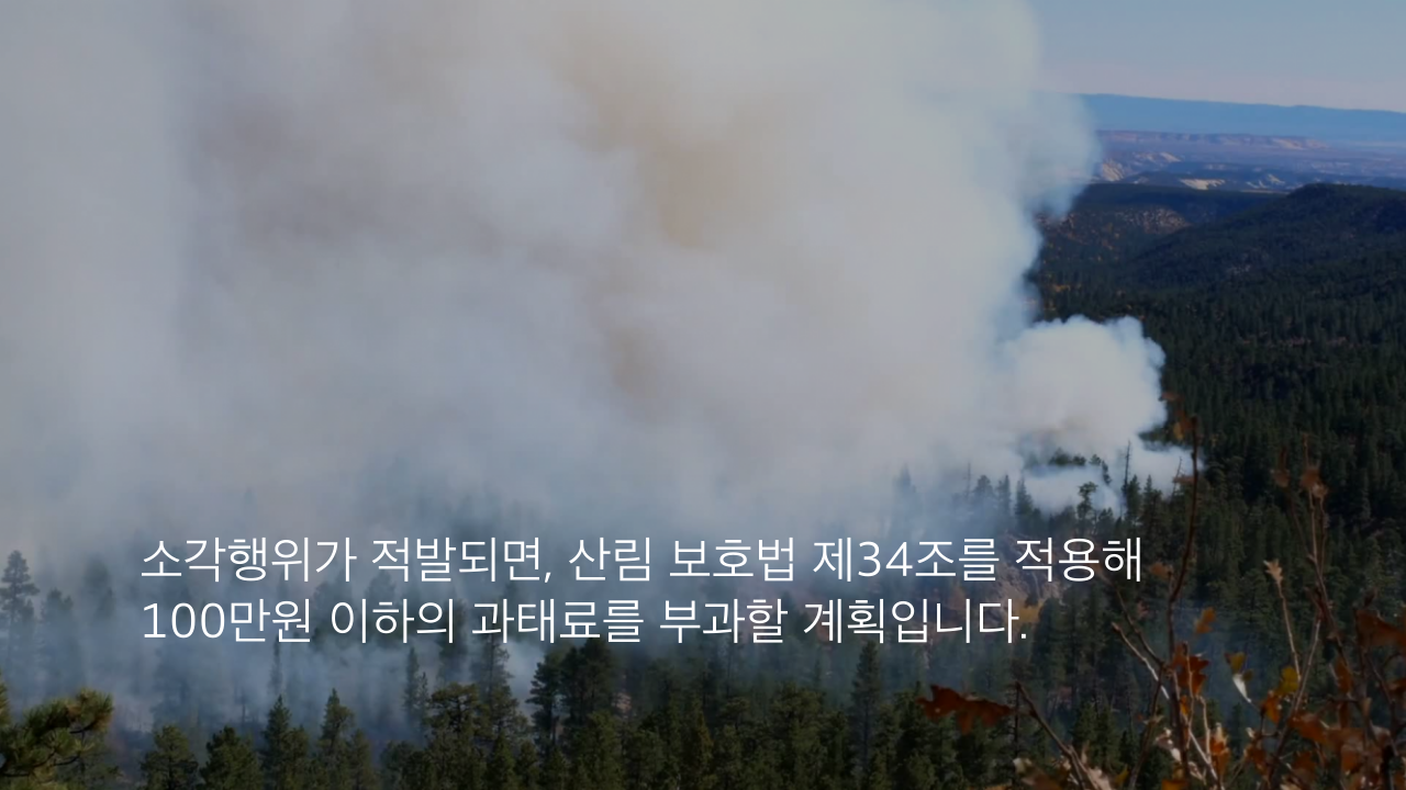 소각행위가 적발되면, 산림 보호법 제34조를 적용해 100만원 이하의 과태료를 부과할 계획입니다.