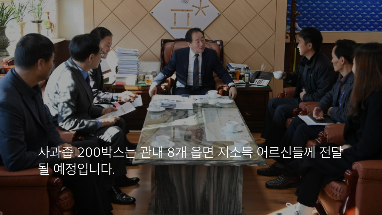 이경호 대표는 "어르신들이 사과즙을 드시고, 추운 겨울을 건강하게 보내는데 도움이 됐으면 좋겠다"고 말했습니다.