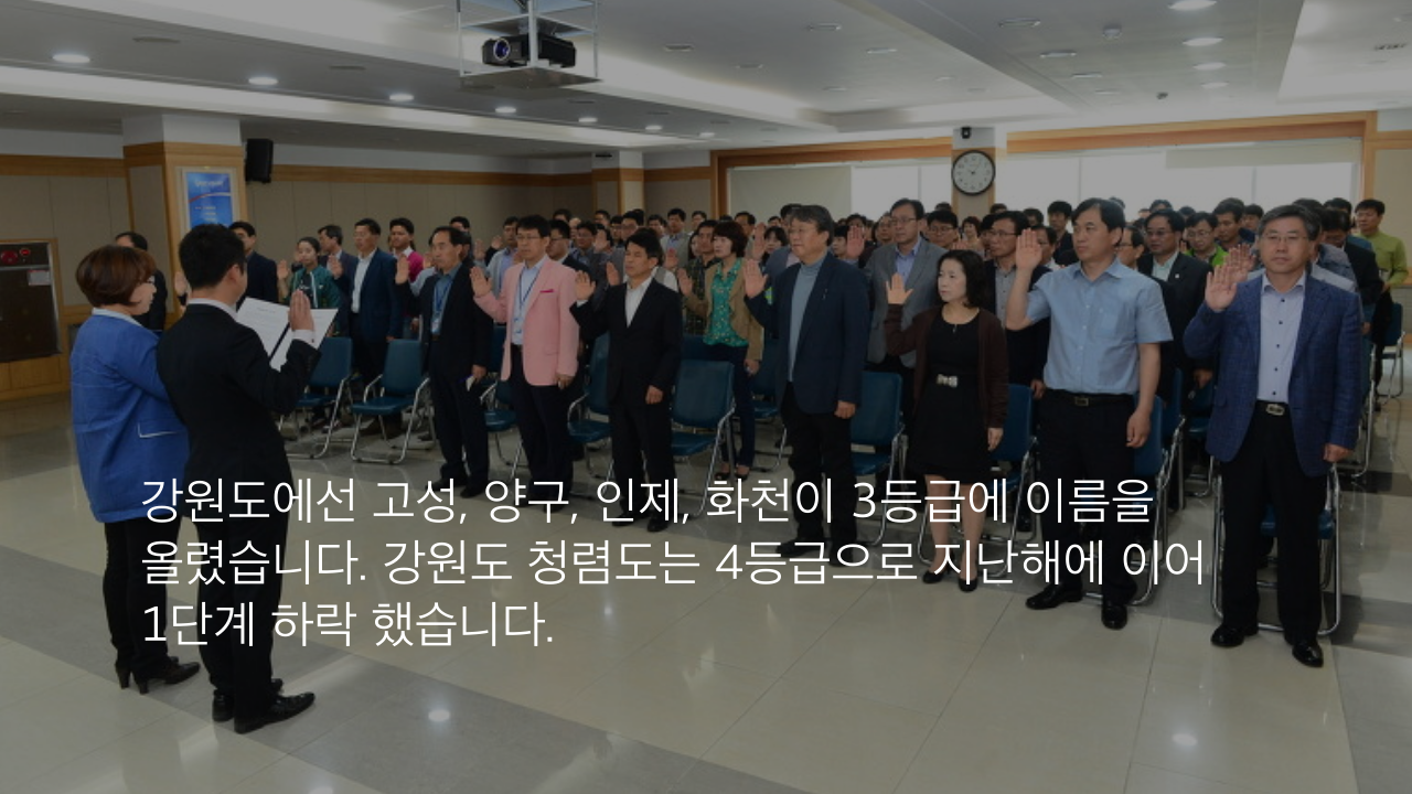 강원도에선 고성, 양구, 인제, 화천이 3등급에 이름을 올렸습니다.