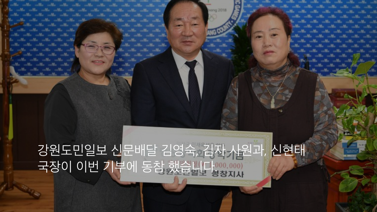 강원도민일보 신문배달 김영숙, 김자 사원과, 신현태 국장이 이번 기부에 동참 했습니다.