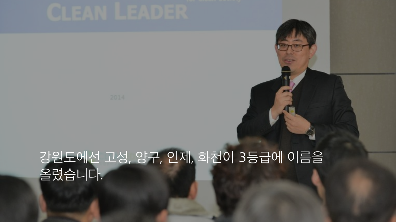 강원도에선 고성, 양구, 인제, 화천이 3등급에 이름을 올렸습니다. 강원도 청렴도는 4등급으로 지난해에 이어 1단계 하락 했습니다.