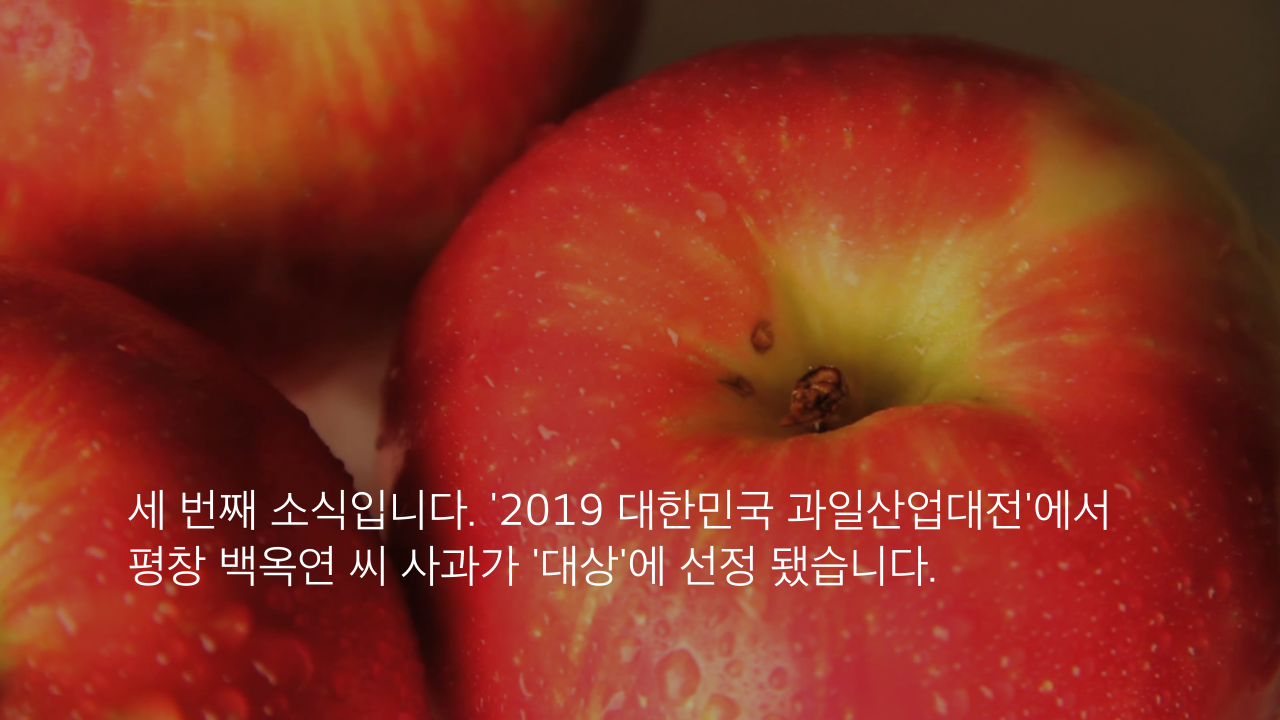 세 번째 소식입니다. '2019 대한민국 과일산업대전'에서 평창 백옥연 씨 사과가 '대상'에 선정 됐습니다.