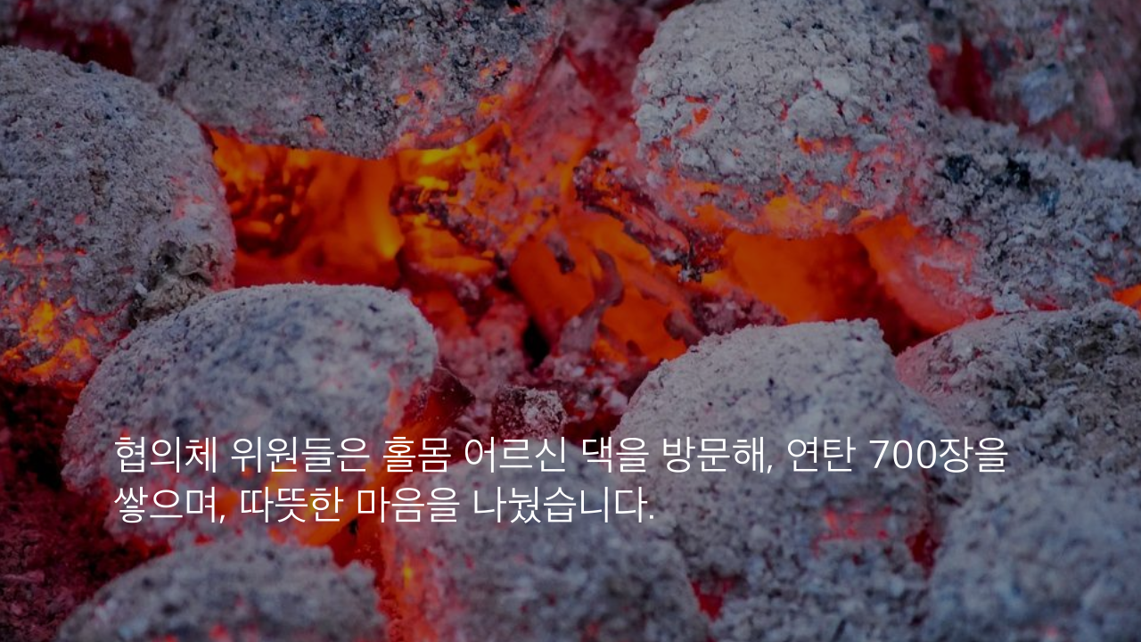 협의체 위원들은 홀몸 어르신 댁을 방문해, 연탄 700장을 쌓으며, 따뜻한 마음을 나눴습니다.