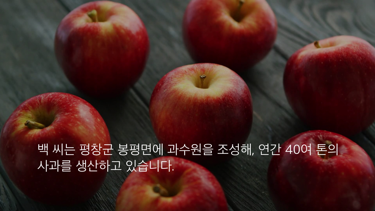 백 씨는 평창군 봉평면에 과수원을 조성해, 연간 40여 톤의 사과를 생산하고 있습니다.
