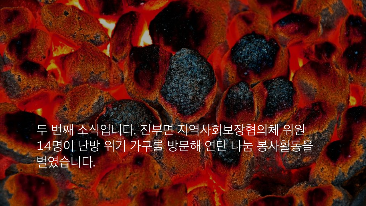 두 번째 소식입니다. 진부면 지역사회보장협의체 위원 14명이 난방 위기 가구를 방문해 연탄 나눔 봉사활동을 벌였습니다.