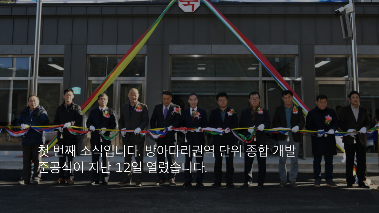 첫 번째 소식입니다. 방아다리권역 단위 종합 개발 준공식이 지난 12일 열렸습니다.