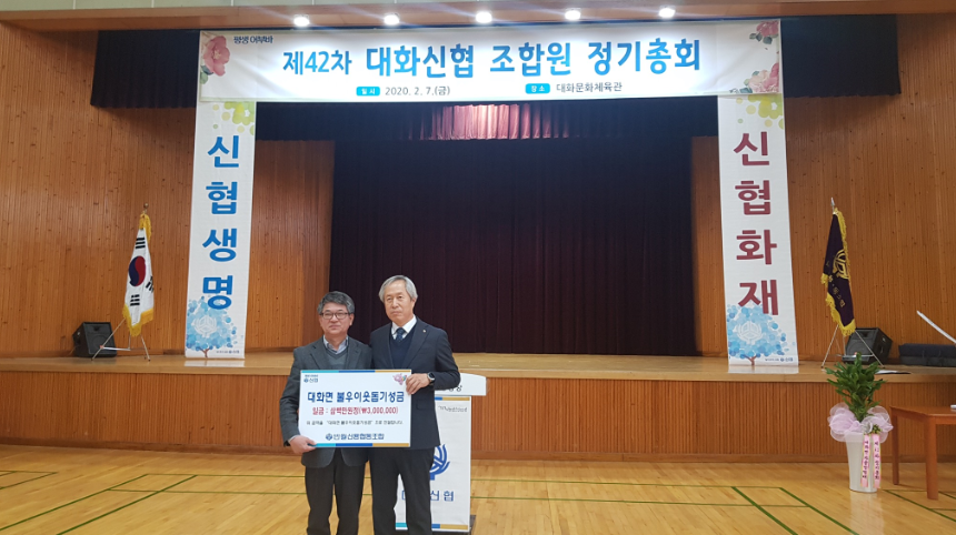 지난 7일 대화신협과 자매결연을 맺은 경기도 안산 발원신협(이사장 박진환)과 대화신협(이사장 최현광)은 제42차 대화신협정기총회 및 제15대 대화신협이사장 선거에 앞서 기부행사를 진행하였다.