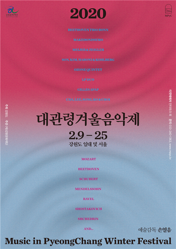 2020대관령겨울음악제는 2018평창동계올림픽이 문화올림픽으로 성공적으로 개최되었던 것을 기념하는 의미로, 올림픽이 열렸던 기간인 2월 9일부터 2월 25일까지 올림픽의 도시인 평창, 강릉, 정선과 더불어 원주, 춘천, 도내 접경 지역인 철원과 고성, 그리고 서울에서 진행된다.