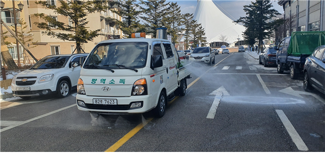 군에 따르면 2월 10일부터 군청, 공공시설, KTX역, 터미널 등 다중이용시설에 연무소독을 보건의료원 자체 긴급 방역기동반을 편성하여 실시해오고 있으며, 2월 24일부터 지역사회 자원을 총 동원(농업기술센터 방역차량2대, 평창영월정선 축협 방역차량1대)하여 방역소독을 확대 실시한다.
