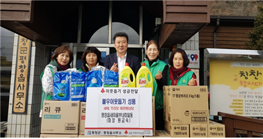 ○ 어제(2.26.) 평창읍새마을부녀회(회장 원금숙)에서 관내 어려운 이웃을 위하여 60만원 상당의 생필품(세제, 트리오 등)을 읍사무소에 기탁.