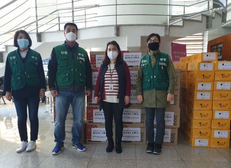 전국민주연합노동조합 강릉시지부(지부장 신영균)에서는 414:30신종코로나바이러스(코로나 19) 감염증 사태가 확산되고, 50여일 이상 대응업무에 피로가 누적된 강릉시 공직자를 위로하기 위해 조합원들의 뜻을 모아 천혜향, 비타민C 5,550,000원 상당의 물품을 전달했다.