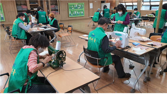벌써 며칠째 명륜1동 행정복지센터에는 재봉틀 돌아가는 소리가 끊이지 않고 있다.