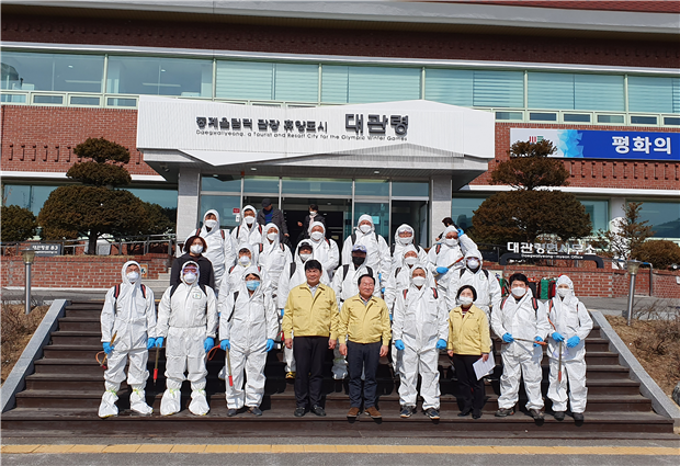 번영회, 이장협의회 등 10개 단체로 구성된 대관령면 사회단체방재단은 코로나19의 급속한 확산 및 도내 확진자 발생 등으로 인해 주민들의 불안감이 커지고 방역소독 문의가 잇따르자 자발적으로 나서 면내 방역작업을 실시하였으며, 추후 상황에 맞춰 수시로 방역작업을 실시할 계획이다.