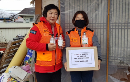 평창소방서 평창여성의용소방대(대장 유영숙)는 신종 코로나 바이러스 감염증(코로나19) 확산 방지를 위해 손소독제를 전달하며 따뜻한 마음을 보탰다.