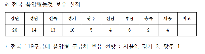 ※ 도내 음압형구급차 보유 3 : 춘천 강대병원1, 강릉아산병원1 원주기독1