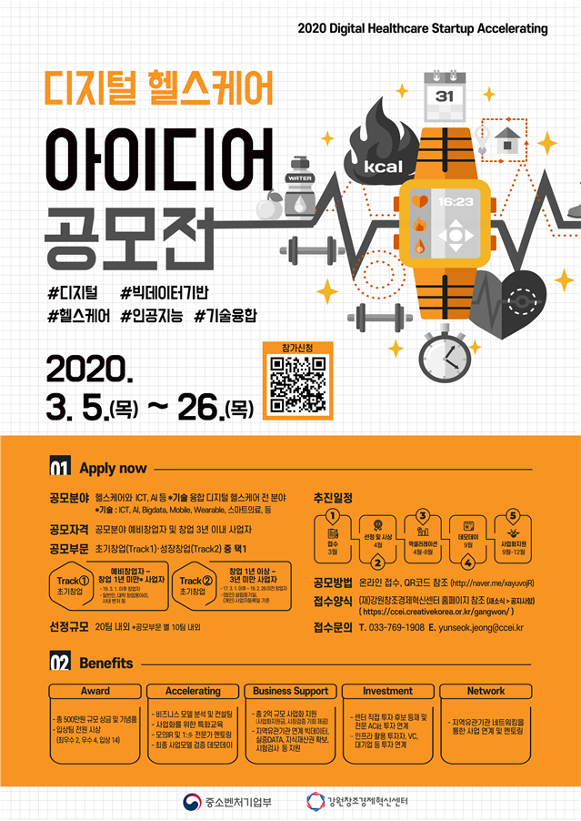 강원권 특화산업인 디지털 헬스케어 분야의 혁신 아이디어를 보유한 유망 스타트업을 발굴해 성장 단계까지 원스톱으로 지원하여 지역 경제 활성화 및 일자리 창출을 도모한다는 계획이다. *디지털 헬스케어 분야 : 헬스케어와 ICT, AI 등의 기술이 융합된 신산업 분야