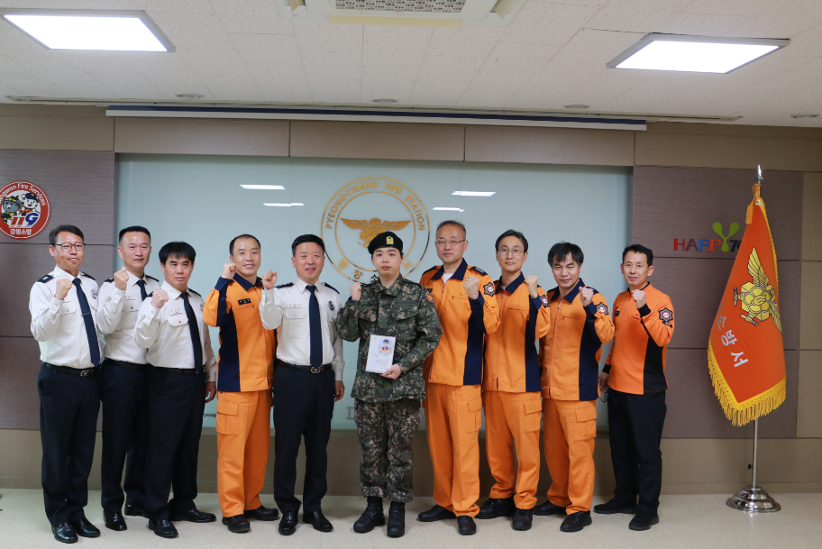 남종훈 서장은 “건강하게 전역하는 의무소방에게 진심으로 축하를 전한다.”라며, “전역 후에도 사회에 빛이 되는 사람으로 성장하길 빈다.”라고 전했다.