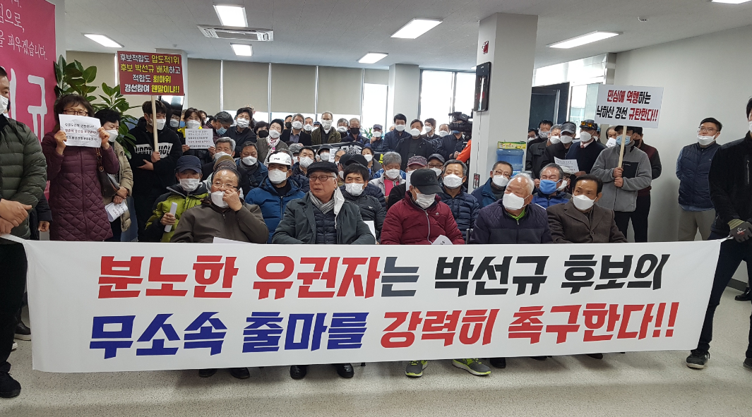 4개 군에서 모인 지지자들은 “분노한 유권자는 박선규 후보의 무소속 출마를 강력히 촉구한다.”는 현수막과 피켓을 들고 박 후보의 무소속 출마 선언을 요청했다고 한다.