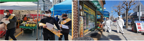 진부전통시장 상인회, 코로나19 방지관련 홍보전단지 배부 및 방역활동