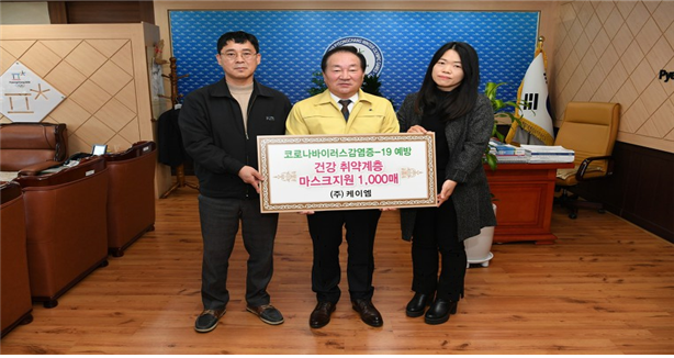 평창군 농공단지 입주업체인 ㈜케이엠은 코로나19의 지역사회 확산방지와 예방을 위해 지역 주민들을 위한 방역물품을 기부했다고 밝혔다.