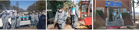 대화면전통시장상인회(회장 강덕호) 회원 6명은 코로나19 예방을 위해 대화면 시내 일대를 방역 소독했다.