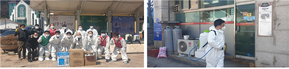 진부전통시장 상인회(회장 송경수)와 진부면 번영회(회장 홍석화) 회원들은 진부시가지 코로나19 방역활동을 실시했다.