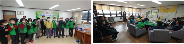 송기동 평창부군수와 이용화 대화면장을 비롯하여 대화면 번영회(회장 남진삼), 체육회(회장 김수진), 새마을남녀지도자협의회(회장 전봉술, 정성현)에서 평창읍새마을부녀회(회장 원금숙) 마스크 제작 봉사의 노고를 격려하기 위하여 읍사무소를 방문하여 떡과 음료를 전달하며 부녀회 회원들을 격려했다.