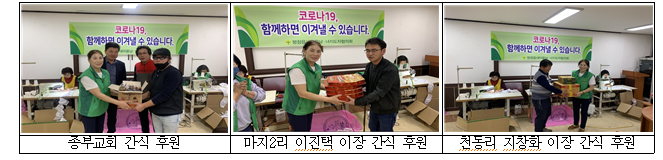 - 종부교회(목사 최승화) : 손수 내린 더치커피 10통과 직접 구운 커피빵 간식