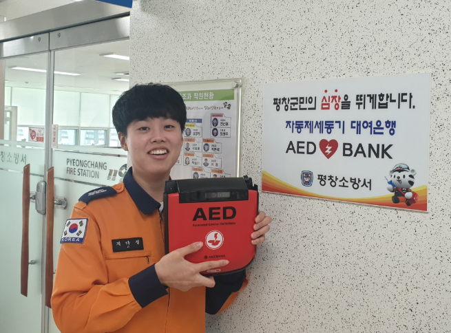 평창소방서는 농촌지역 의료환경 개선을 위한 사업으로 자동제세동기 대여은행인 ‘AED BANK’를 운영한다고 밝혔다.
