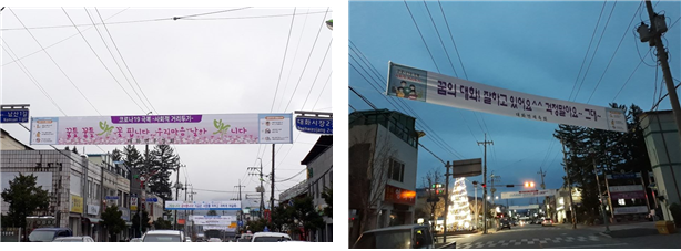 응원현수막에는‘걱정말아요! 그대’,‘잘하고 있어’, ‘꿈틀꿈틀 봄꽃핍니다. 우리마음 날아봅니다.’ 라는 문구로 주민의 불안감을 해소하고 미래에 대한 희망의 긍정적 메시지를 전달하고 있어 눈길을 끌었다.