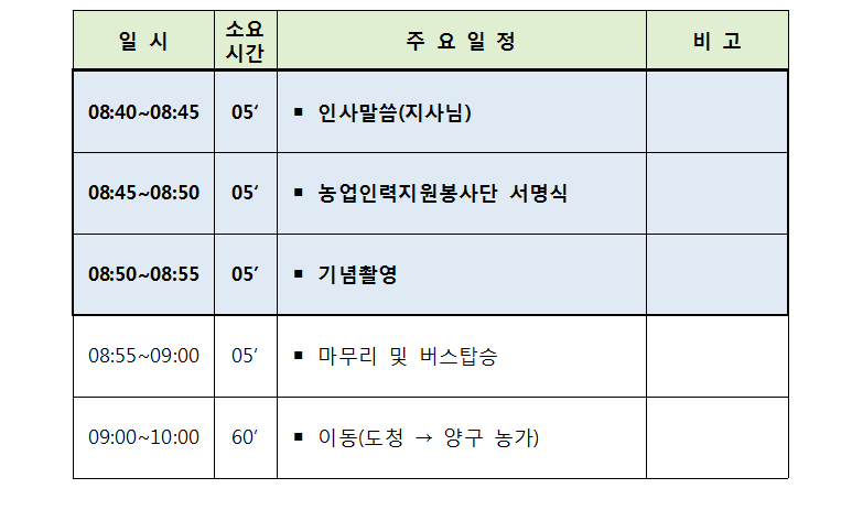 이번 행사는 코로나19 여파로 외국인계절근로자 입국이 지연되는 등 농촌 일손 부족 심화에 따른 농가 지원 「강원농업인력지원봉사단」출범을 기념하는 행사로 유관기관 및 사회단체장 등 100여명이 참석한다.