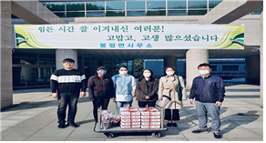 한국외식업중앙회 평창군지부 봉평분회(회장 황남월)는 2주간 이탈리아 교민에게 생활 물품세트 및 방역물품 등을 교민들에게 전달하며 고생한 자원봉사자들을 위해 닭강정 20박스를 직접 전달하여 봉사자들에 대한 감사함과 격려를 표현했다.