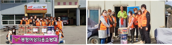 봉평면 여성의용소방대(대장 최영순)는 회원 15명이 참석한 가운데 봉평면 내 독거노인가구 10여 곳을 방문하여 라면, 두루마리 휴지 등 생필품을 전달하고 최근 건조한 날씨로 화재의 위험성이 높아져 화재에 취약한 생활환경에 놓여 있는 어르신들께 가정용 소화기 전달과 함께 소화기 사용법을 알려드렸다고 밝혔다.