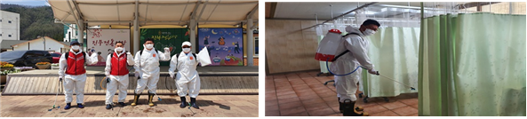진부전통시장상인회(회장 송경수)회원들은 진부시가지 코로나19 방역소독을 실시했다.