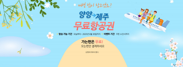 플라이강원 관계자는 “떠나기 좋은 봄날, 여행에 목마른 고객을 대상으로 더욱 설레는 양양~제주 여행길을 만들어 드리고자 이번 이벤트를 준비하게 됐다”며 “플라이강원과 함께 봄내음 가득한 제주에서 편안하고 행복한 여행하시기를 바란다”고 말했다.