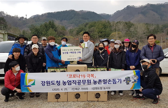 농사모는 강원도청 6급이하 농업직 모임으로, 매년 도움이 필요한 농가를 찾아 자원봉사를 해왔는데, 이번에는 특히 코로나 19를 함께 극복하자는 응원을 담아 1백만 원 어치 지역 농산물도 구매하였다.