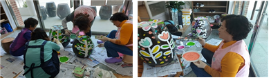 용평면 속사1리(이장 김성래) 주민 20여 명은 보건의료원 직원들과 함께 속사1리 마을회관에서 안 쓰는 항아리를 재활용하여 그림 그리는 봉사를 진행했다.