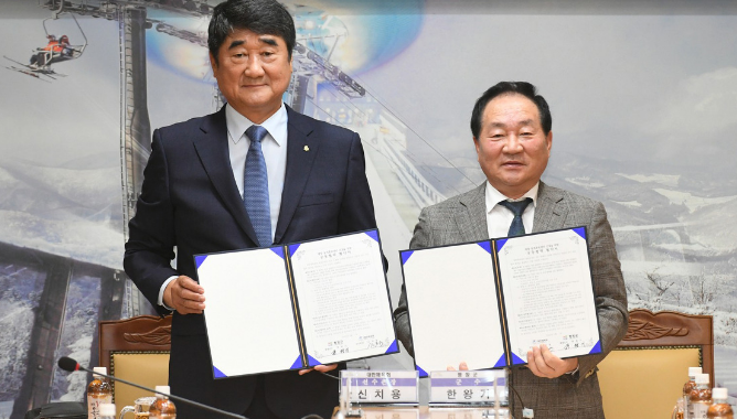 평창군은 동계훈련센터 건립과 관련한 원활한 업무 추진을 위해 대한체육회(회장 이기흥)와 20일 오전 11시 군청 소회의실에서 업무협약을 체결했다고 밝혔다.