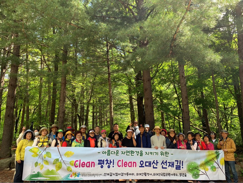 평창군건강생활지원센터 선재길 지킴이 주민걷기 동아리는 지난 27일(수) 회원 30여명(회장 최종만), 월정사, 맑음숲 산림교육 기관, 건강생활지원센터 직원 등과 함께 '보메기~오대산장' 8km구간 선재길 탐방로 일대의 쓰레기를 수거하는 등 선재길 탐방로 환경정화와 지킴이 활동을 펼쳤다고 밝혔다.