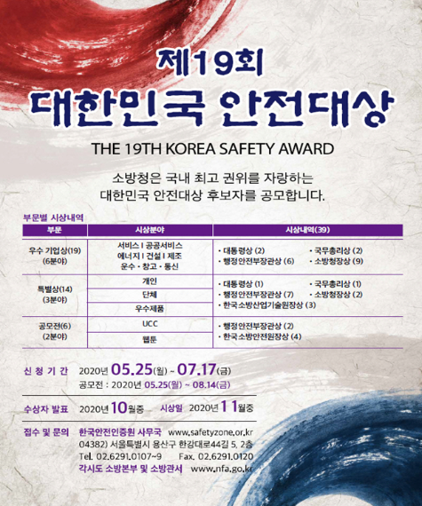 평창소방서는 오는 7월 17일까지 자율적인 안전문화를 정착시키기 위한 ‘제19회 대한민국 안전대상’ 후보를 공개 모집한다고 밝혔다.