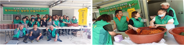 봉평면 남·녀 새마을협의회(회장 이기철, 장미숙)에서는 무이1리 체험관에서 회원 40여 명이 모여 평창군 릴레이 자원봉사활동으로 관내 독거어르신, 장애인가정을 위해 김치, 멸치볶음 등 밑반찬을 만들어 각 가정에 배부하였다.