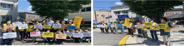 고향을 생각하는 주부모임 진부분회(회장 원영숙)에서 릴레이 봉사의 일환으로 진부파출소 앞 사거리에서 코로나19가 종식되길 바라는 응원캠페인을 진행했다.