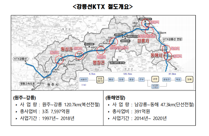 강원도는 「강릉선KTX 역세권개발 지역특성화전략 종합기본구상 용역」을 완료하여 4개시군 8개지역의 역세권별 개발 구상안을 수립하였다.